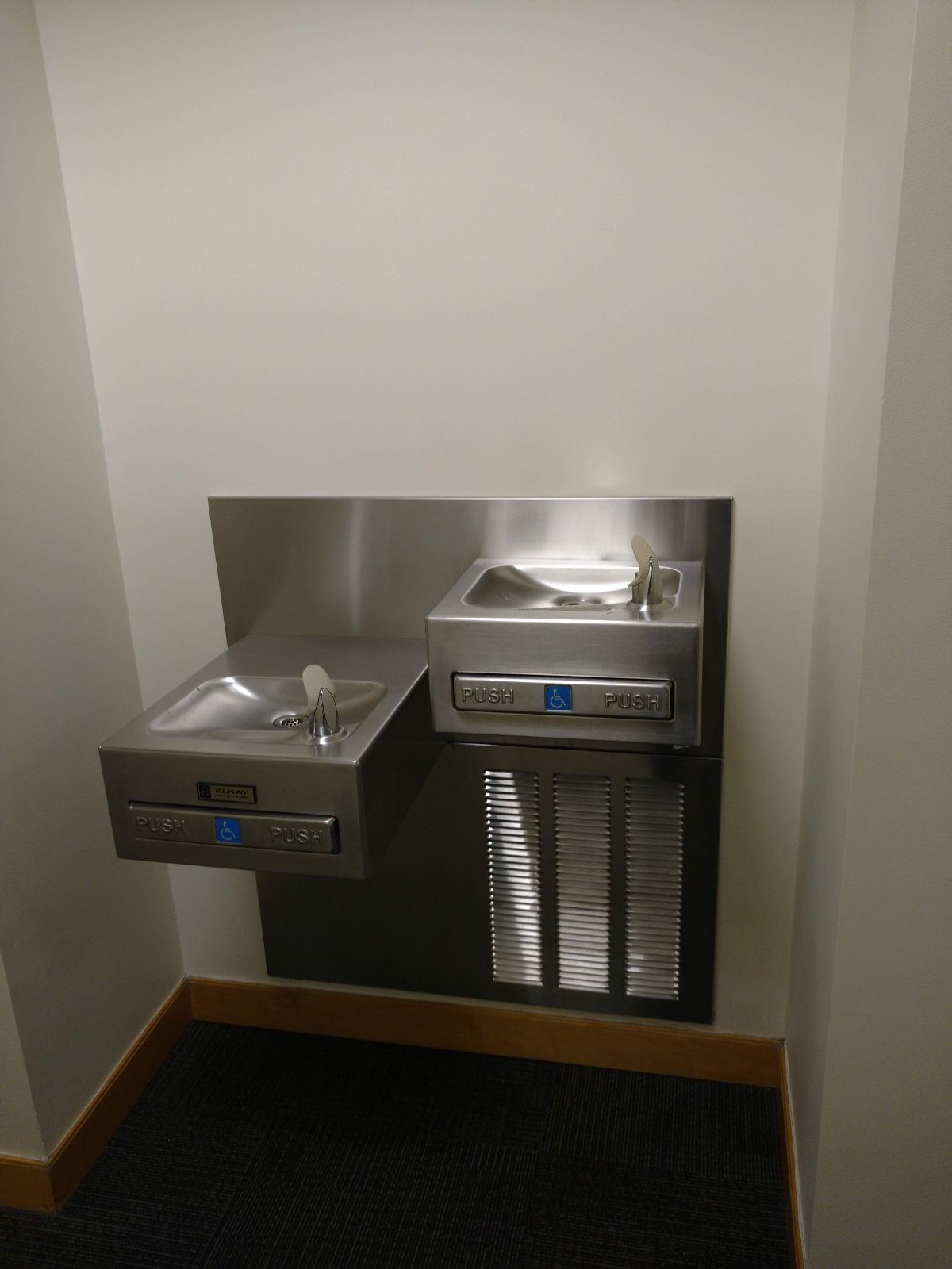 Water fountain on the third floor of the Landau Economics Building